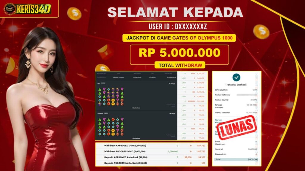Setiap hari, member KERIS34D berhasil meraih jackpot besar dari berbagai provider slot ternama yang kami sediakan, seperti Pragmatic Play, Habanero, PG Soft, dan masih banyak lagi. Kami secara rutin menampilkan bukti screenshot atau rekapan kemenangan yang berhasil diraih, mulai dari kemenangan ratusan ribu hingga puluhan juta rupiah. Semua slip kemenangan ini kami hadirkan untuk membuktikan bahwa di KERIS34D, peluang menang itu nyata