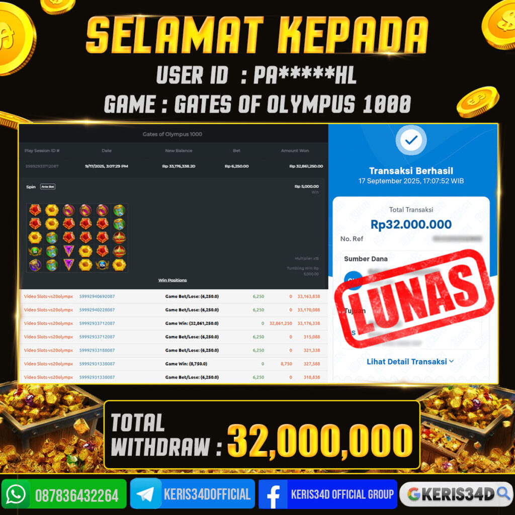 JACKPOT SLOT GACOR GATES OF OLYMPUS 1000 17 SEPTEMBER 2025, Jackpot Slot Gacor, Kemenangan Slot, Bukti Kemenangan Slot, Kemenangan PRAGMATIC PLAY, Menang Slot online, Slot Gacor, Situs Aman Terpercaya, WD Berapapun Pasti DI Bayar Tuntas, Maxwin Slot Online.