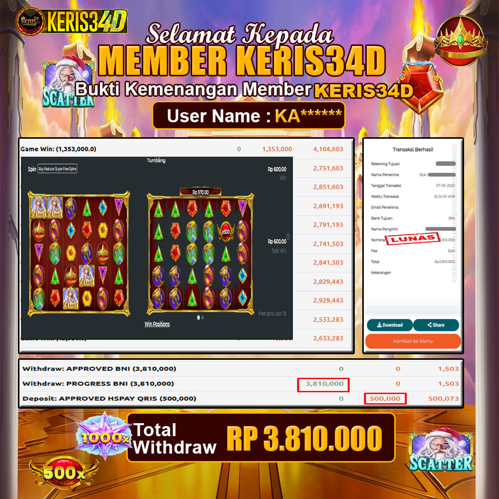 Satu lagi Bukti JP dan Pembarayan Sah Dan Dapat Dipertanggung Jawabkan, WD Berapapun Pasti Dibayar Lunas Hanya di Situs KERIS34D. Hati Hati Kepada Pihak Pihak Yang Mengatas namakan Pihak KERIS34D Untuk Melakukan Penipuan.