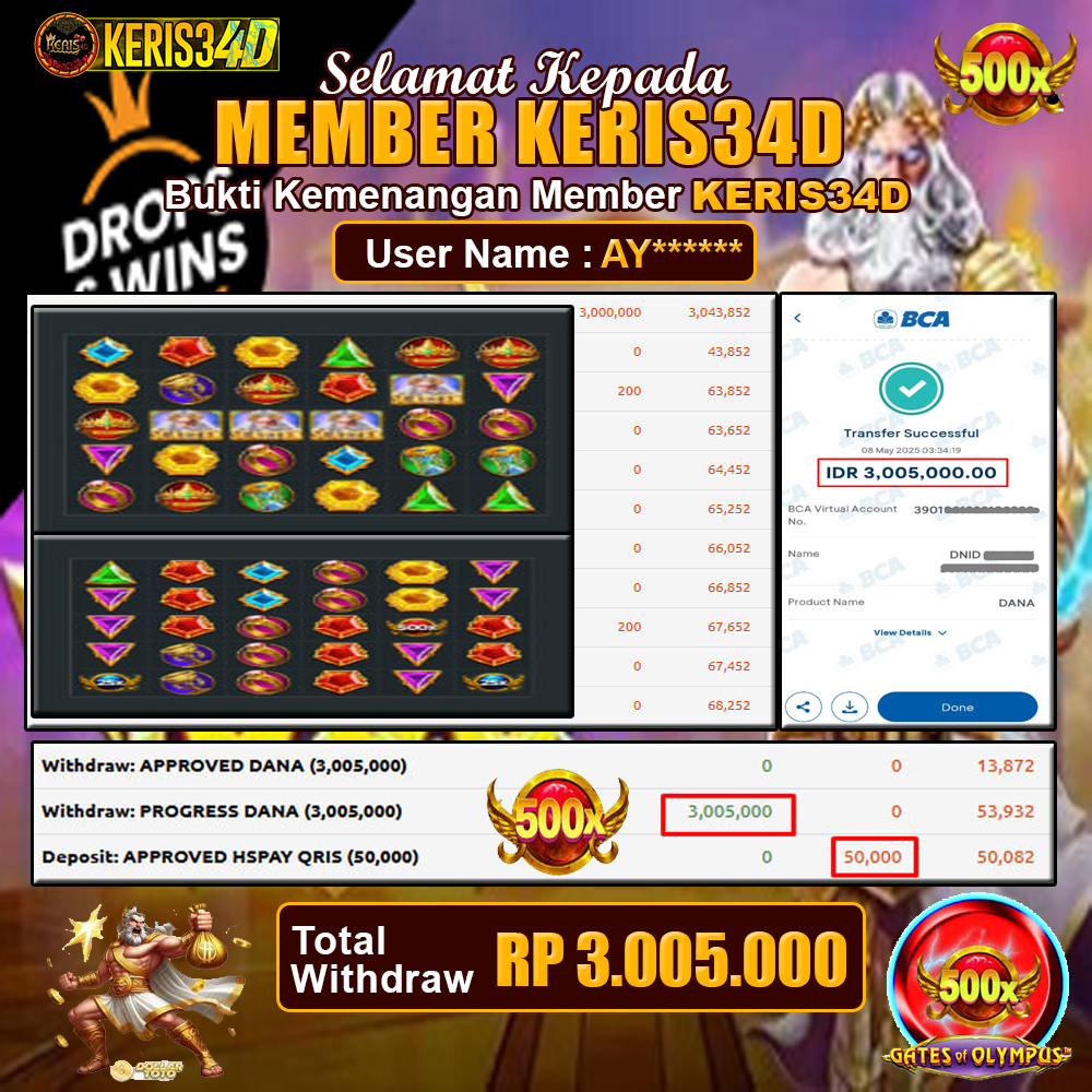 TOTAL KEMENANGAN : Rp. 3.005.000