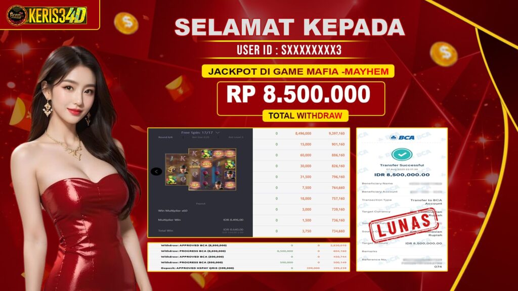 KERIS34D dikenal sebagai situs terpercaya yang selalu menghadirkan pengalaman bermain slot online yang aman, fair, dan berlisensi resmi. Di sini, kami tidak hanya sekadar memberikan janji, tapi bukti nyata berupa slip kemenangan yang dapat Anda lihat secara langsung.