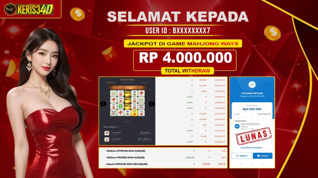 Setiap hari, member KERIS34D berhasil meraih jackpot besar dari berbagai provider slot ternama yang kami sediakan, seperti Pragmatic Play, Habanero, PG Soft, dan masih banyak lagi. Kami secara rutin menampilkan bukti screenshot atau rekapan kemenangan yang berhasil diraih, mulai dari kemenangan ratusan ribu hingga puluhan juta rupiah. Semua slip kemenangan ini kami hadirkan untuk membuktikan bahwa di KERIS34D, peluang menang itu nyata