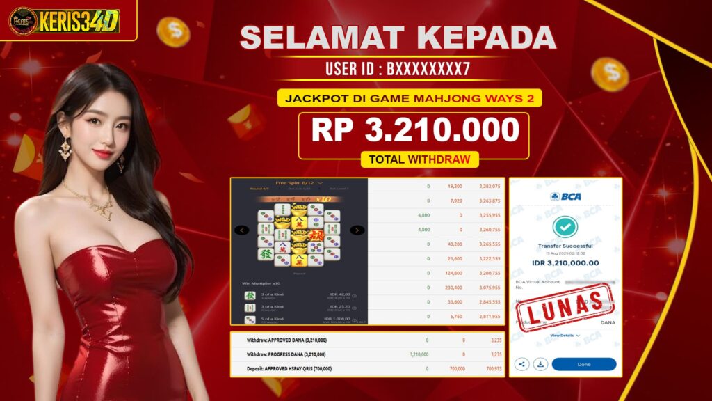 Setiap hari, member KERIS34D berhasil meraih jackpot besar dari berbagai provider slot ternama yang kami sediakan, seperti Pragmatic Play, Habanero, PG Soft, dan masih banyak lagi. Kami secara rutin menampilkan bukti screenshot atau rekapan kemenangan yang berhasil diraih, mulai dari kemenangan ratusan ribu hingga puluhan juta rupiah. Semua slip kemenangan ini kami hadirkan untuk membuktikan bahwa di KERIS34D, peluang menang itu nyata