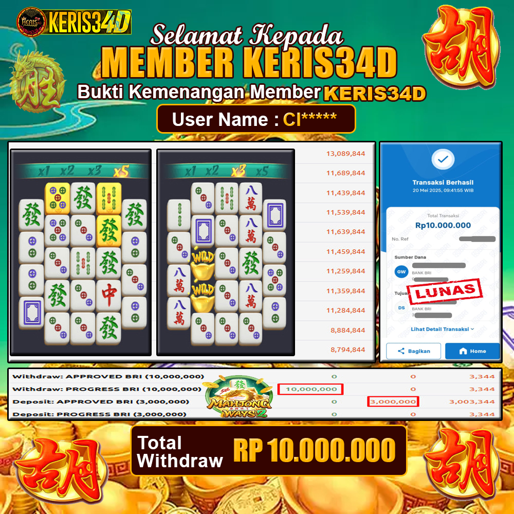 KERIS34D dikenal sebagai situs terpercaya yang selalu menghadirkan pengalaman bermain slot online yang aman, fair, dan berlisensi resmi. Di sini, kami tidak hanya sekadar memberikan janji, tapi bukti nyata berupa slip kemenangan yang dapat Anda lihat secara langsung.