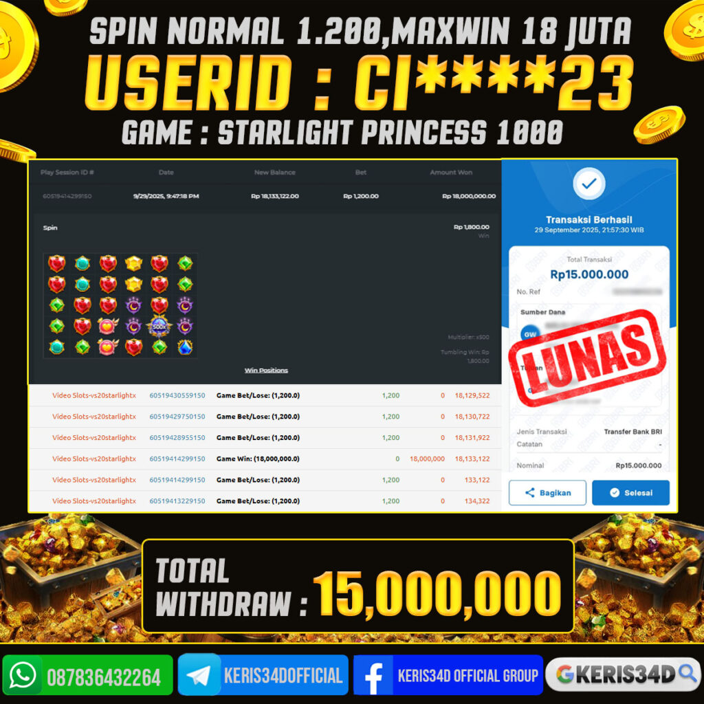 JACKPOT SLOT GACOR STARLIGHT PRINCESS 1000 19 SEPTEMBER 2025, Jackpot Slot Gacor, Kemenangan Slot, Bukti Kemenangan Slot, Kemenangan PRAGMATIC PLAY, Menang Slot online, Slot Gacor, Situs Aman Terpercaya, WD Berapapun Pasti DI Bayar Tuntas, Maxwin Slot Online.