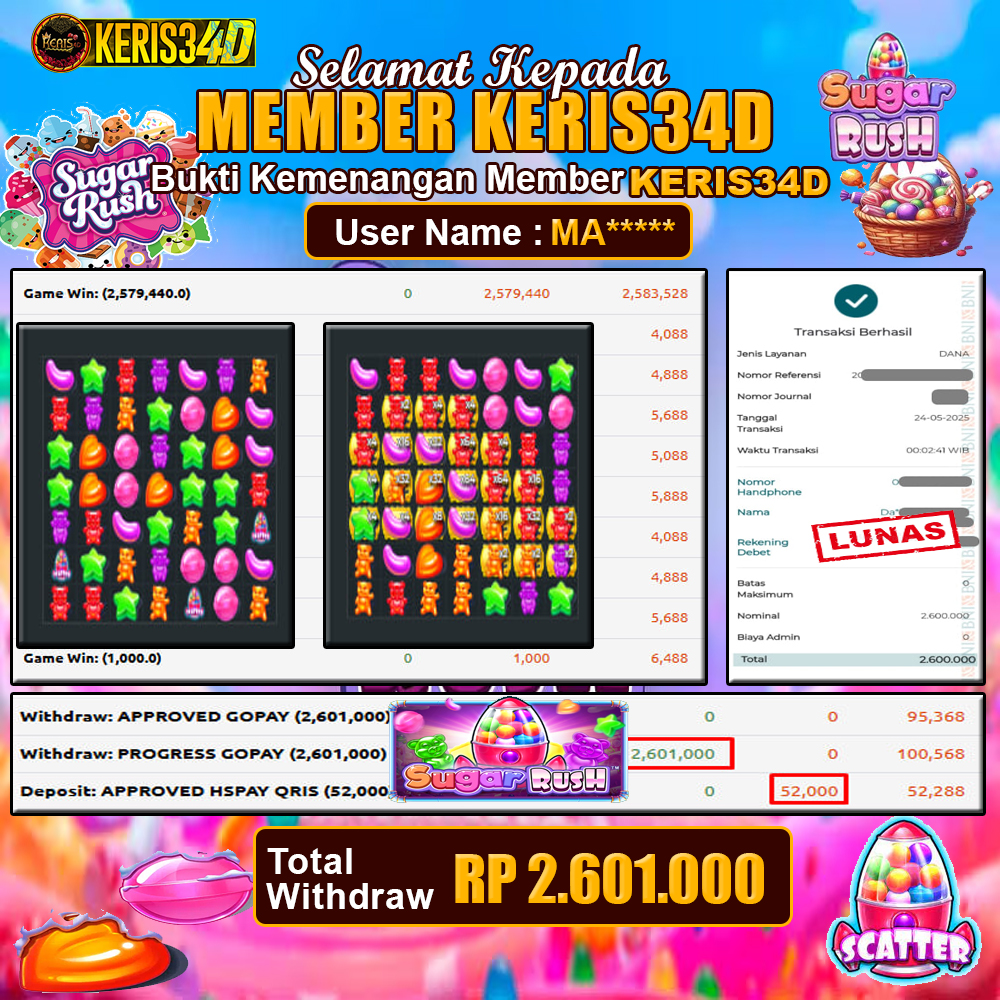 JACKPOT SLOT GACOR SUGAR RUSH 26 MEI 2025, Jackpot Slot Gacor, Kemenangan Slot, Bukti Kemenangan Slot, Kemenangan PRAGMATIC PLAY, Menang Slot online, Slot Gacor, Situs Aman Terpercaya, WD Berapapun Pasti DI Bayar Tuntas, Maxwin Slot Online.