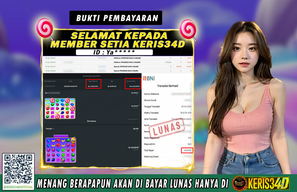 KERIS34D dikenal sebagai situs terpercaya yang selalu menghadirkan pengalaman bermain slot online yang aman, fair, dan berlisensi resmi. Di sini, kami tidak hanya sekadar memberikan janji, tapi bukti nyata berupa slip kemenangan yang dapat Anda lihat secara langsung.