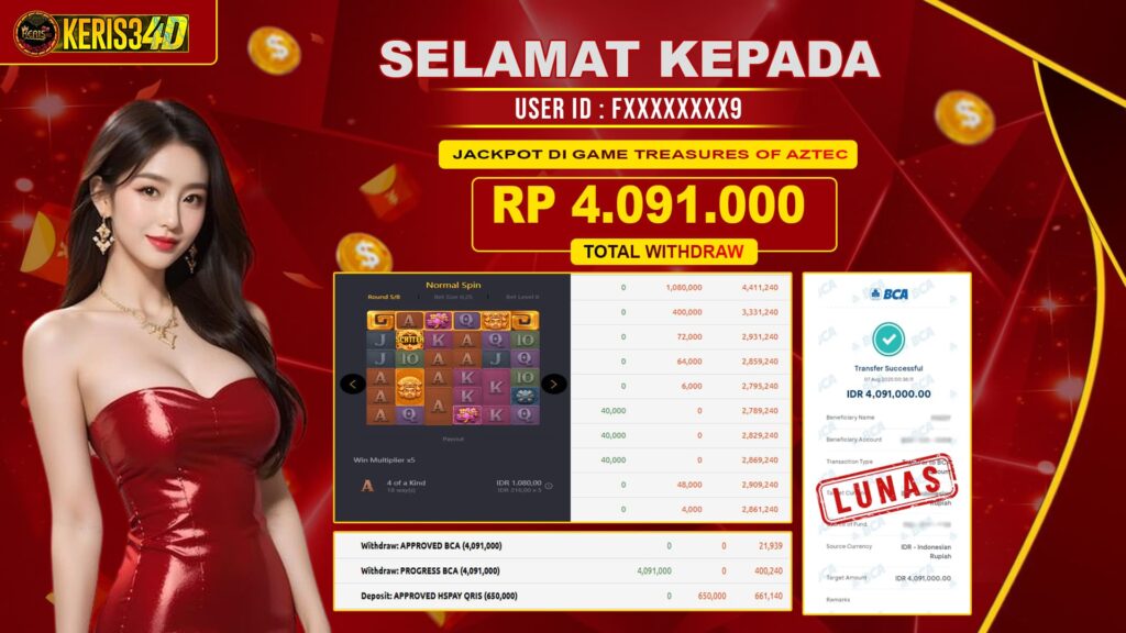 KERIS34D dikenal sebagai situs terpercaya yang selalu menghadirkan pengalaman bermain slot online yang aman, fair, dan berlisensi resmi. Di sini, kami tidak hanya sekadar memberikan janji, tapi bukti nyata berupa slip kemenangan yang dapat Anda lihat secara langsung.