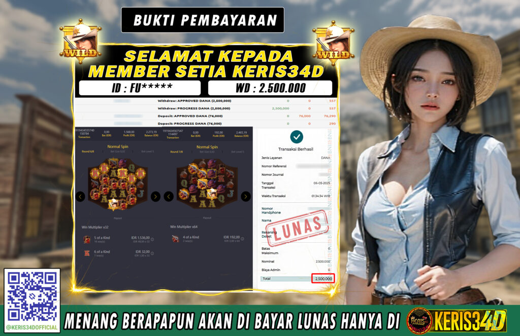 Setiap hari, member KERIS34D berhasil meraih jackpot besar dari berbagai provider slot ternama yang kami sediakan, seperti Pragmatic Play, Habanero, PG Soft, dan masih banyak lagi. Kami secara rutin menampilkan bukti screenshot atau rekapan kemenangan yang berhasil diraih, mulai dari kemenangan ratusan ribu hingga puluhan juta rupiah. Semua slip kemenangan ini kami hadirkan untuk membuktikan bahwa di KERIS34D, peluang menang itu nyata