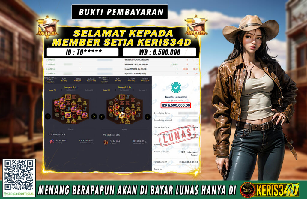 KERIS34D dikenal sebagai situs terpercaya yang selalu menghadirkan pengalaman bermain slot online yang aman, fair, dan berlisensi resmi. Di sini, kami tidak hanya sekadar memberikan janji, tapi bukti nyata berupa slip kemenangan yang dapat Anda lihat secara langsung.