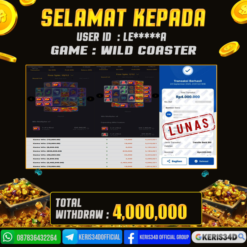 Setiap hari, member KERIS34D berhasil meraih jackpot besar dari berbagai provider slot ternama yang kami sediakan, seperti Pragmatic Play, Habanero, PG Soft, dan masih banyak lagi. Kami secara rutin menampilkan bukti screenshot atau rekapan kemenangan yang berhasil diraih, mulai dari kemenangan ratusan ribu hingga puluhan juta rupiah. Semua slip kemenangan ini kami hadirkan untuk membuktikan bahwa di KERIS34D, peluang menang itu nyata