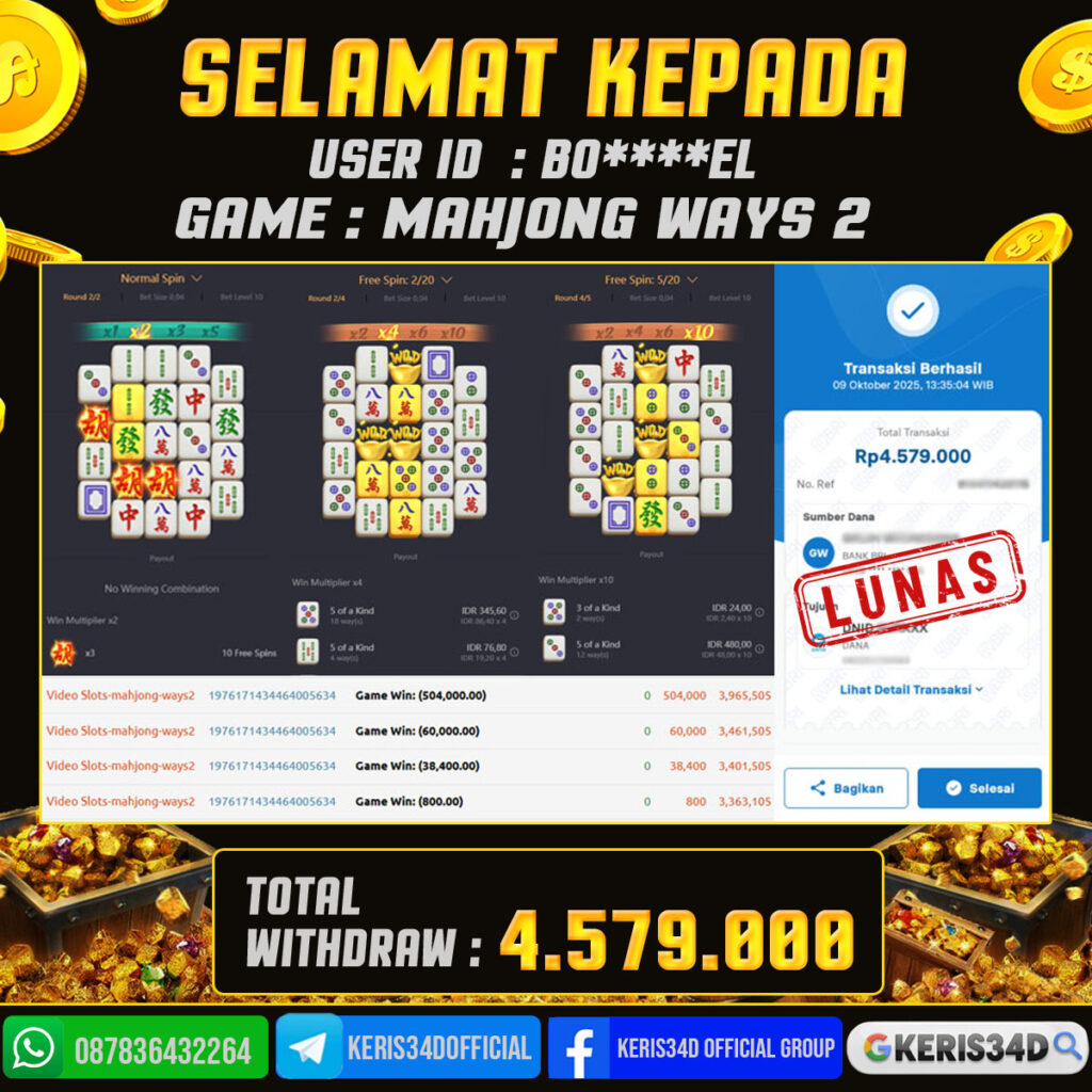 KERIS34D dikenal sebagai situs terpercaya yang selalu menghadirkan pengalaman bermain slot online yang aman, fair, dan berlisensi resmi. Di sini, kami tidak hanya sekadar memberikan janji, tapi bukti nyata berupa slip kemenangan yang dapat Anda lihat secara langsung.