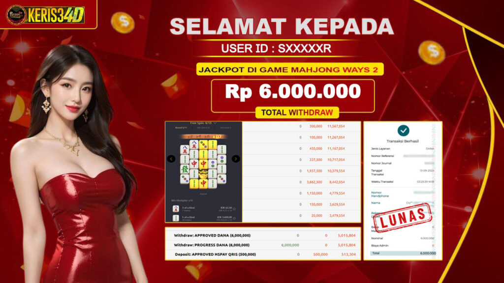 Setiap hari, member KERIS34D berhasil meraih jackpot besar dari berbagai provider slot ternama yang kami sediakan, seperti Pragmatic Play, Habanero, PG Soft, dan masih banyak lagi. Kami secara rutin menampilkan bukti screenshot atau rekapan kemenangan yang berhasil diraih, mulai dari kemenangan ratusan ribu hingga puluhan juta rupiah. Semua slip kemenangan ini kami hadirkan untuk membuktikan bahwa di KERIS34D, peluang menang itu nyata
